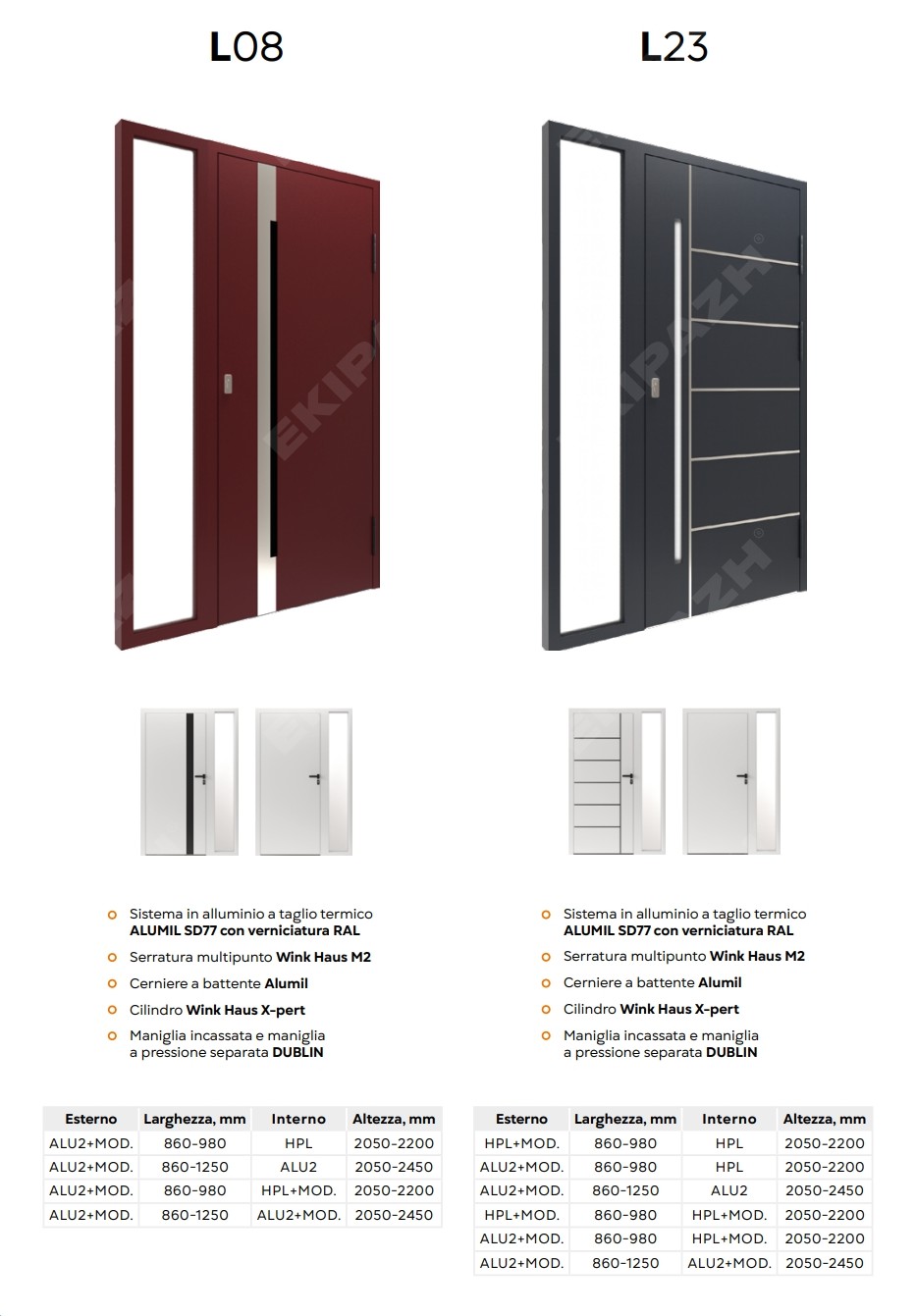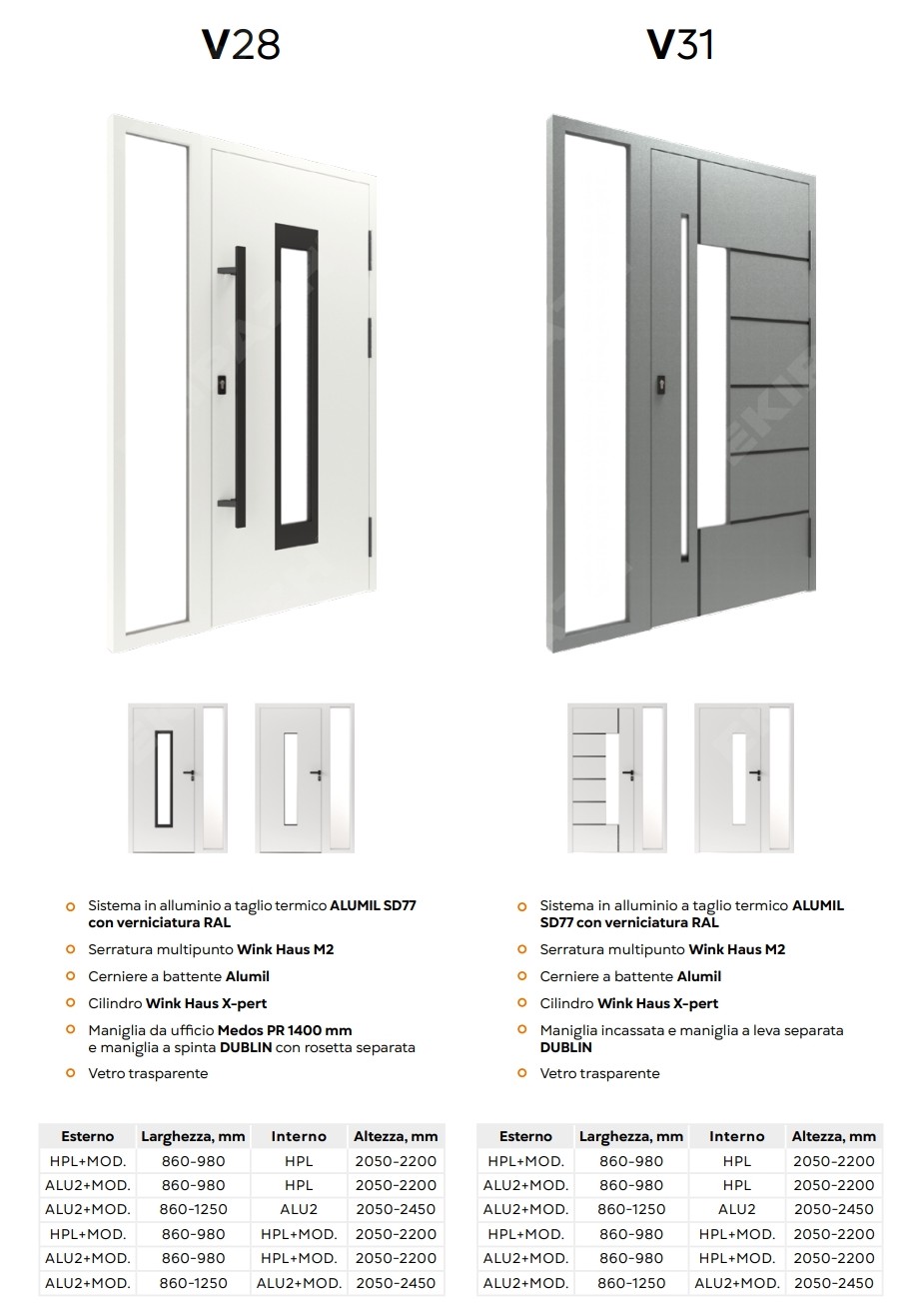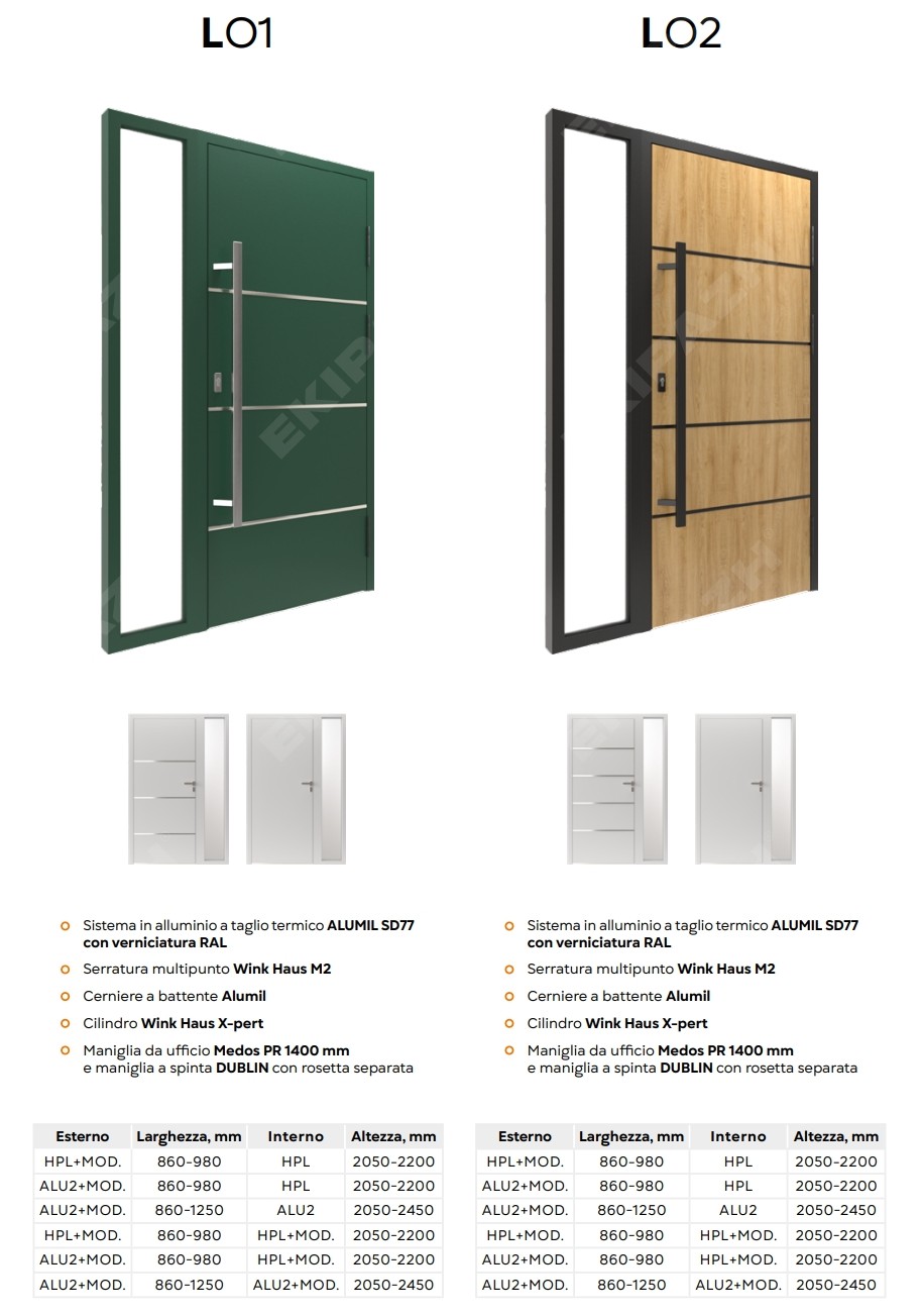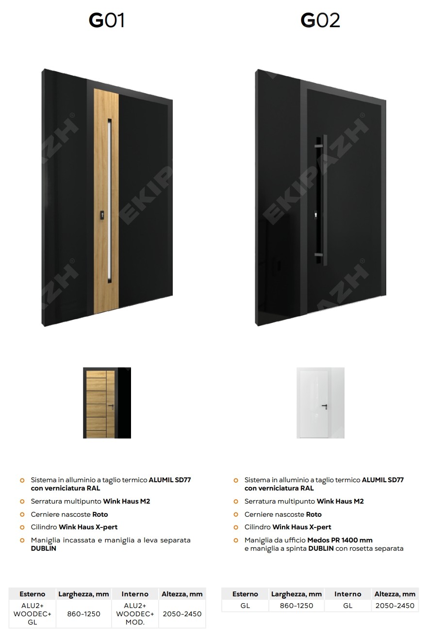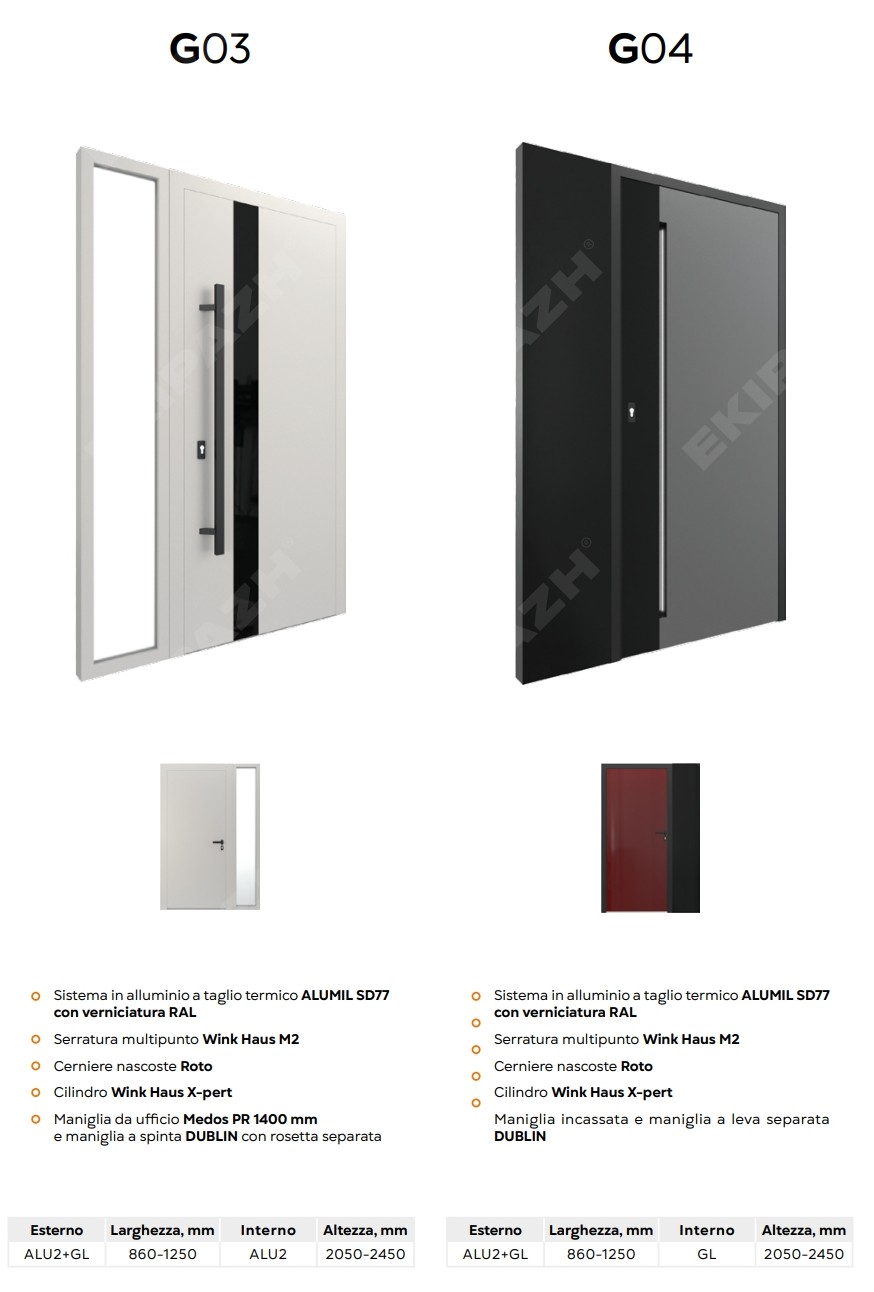 Dal punto di vista della sicurezza, queste porte possono integrare serrature multipunto, cerniere rinforzate e vetri di sicurezza, creando una barriera affidabile contro le effrazioni. L’isolamento termico e acustico è assicurato da profili a taglio termico, guarnizioni di qualità e pannelli coibentati, che contribuiscono a ridurre le dispersioni di calore, migliorare il comfort interno e limitare i rumori provenienti dall’esterno.